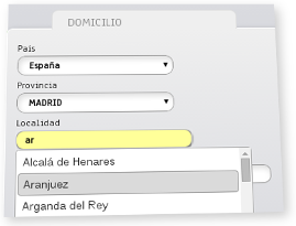 Hemos mejorado la estructura de los domicilios de clientes para que tras elegir como pais "España", puedas seleccionar la Provincia de un campo desplegable, y a partir del valor seleccionado, la Localidad, que será un campo autocompletable. Para otros paises, podrás introducir la Provincia y la Localidad manualmente. Los datos del domicilio aparecen en un apartado separado ("DOMICILIO") en las operaciones de Alta y Modificación de cliente. También es posible realizar búsquedas de clientes aplicando los filtros Pais, Provincia y Localidad (Menú "Clientes > Consulta").