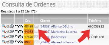 Para hacer más fácil el contacto con el cliente desde la búsqueda de órdenes, hemos incluido en los resultados un enlace directo a su email y sus teléfonos, por lo que ahora no tienes que acceder al detalle del cliente para enviarle un email o llamarle.