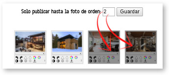 ). Tras subir las fotos, introduce en el campo "Solo publicar hasta la foto de orden" el orden de la última foto a publicar. Desde esa en adelante quedarán como "privadas", no se enviarán a portales inmobiliarios ni se mostrarán en tu web.