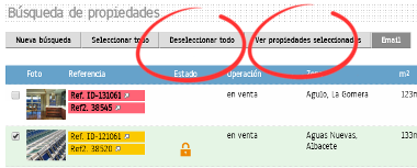 Ahora puedes seleccionar desde la Búsqueda de propiedades (MENU: Propiedades > Búsqueda) inmuebles de distintas páginas (utilizando los botones "siguiente" y "anterior"). Esta función es útil para realizar búsquedas con el cliente interesado, ir seleccionando las propiedades que pueden interesarle y opcionalmente, enviarle un email con los datos de las mismas.