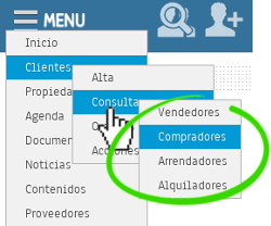Hemos añadido cuatro submenús en el menú de Consulta de Clientes para que puedas acceder directamente a la consulta de clientes vendedores, compradores, arrendadores y alquiladores.