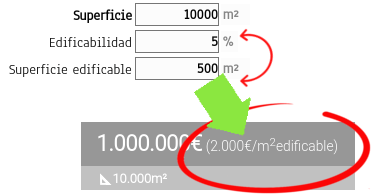 Hemos añadido nuevos campos en la administración de terrenos (parcelas, suelo, fincas, etc.): el porcentaje de "Edificabilidad" y la "Superficie edificable". Introduciendo "Edificabilidad" se calcula automáticamente la "Superficie edificable" y viceversa.