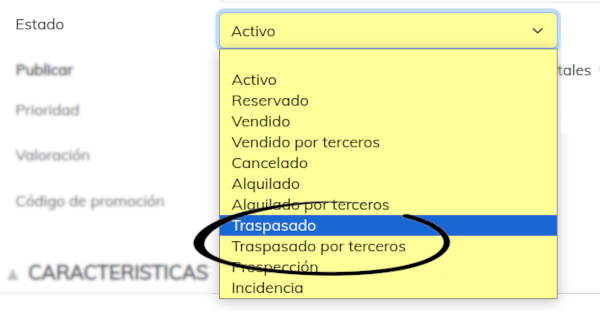Incluimos dos nuevos estados de propiedades: "Traspasada" y "Traspasada por terceros".