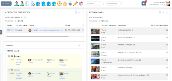 Estrenamos nueva pantalla inicial desde la que podrás tener mayor control sobre tu actividad diaria, seguimiento de clientes, comerciales, tareas, etc.